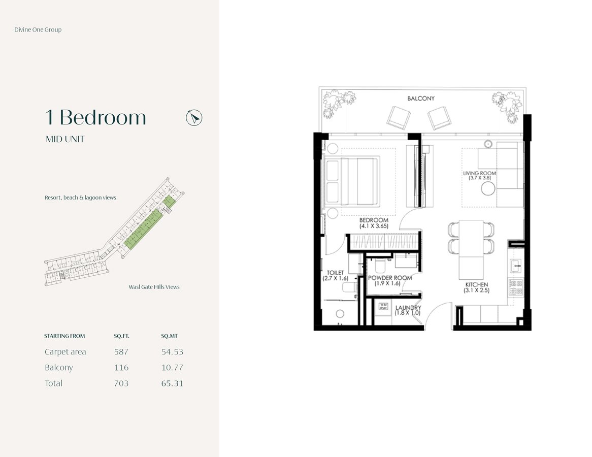 1 Bedroom | - | 1 Bedroom | 703.00 Sq Ft | Apartment |