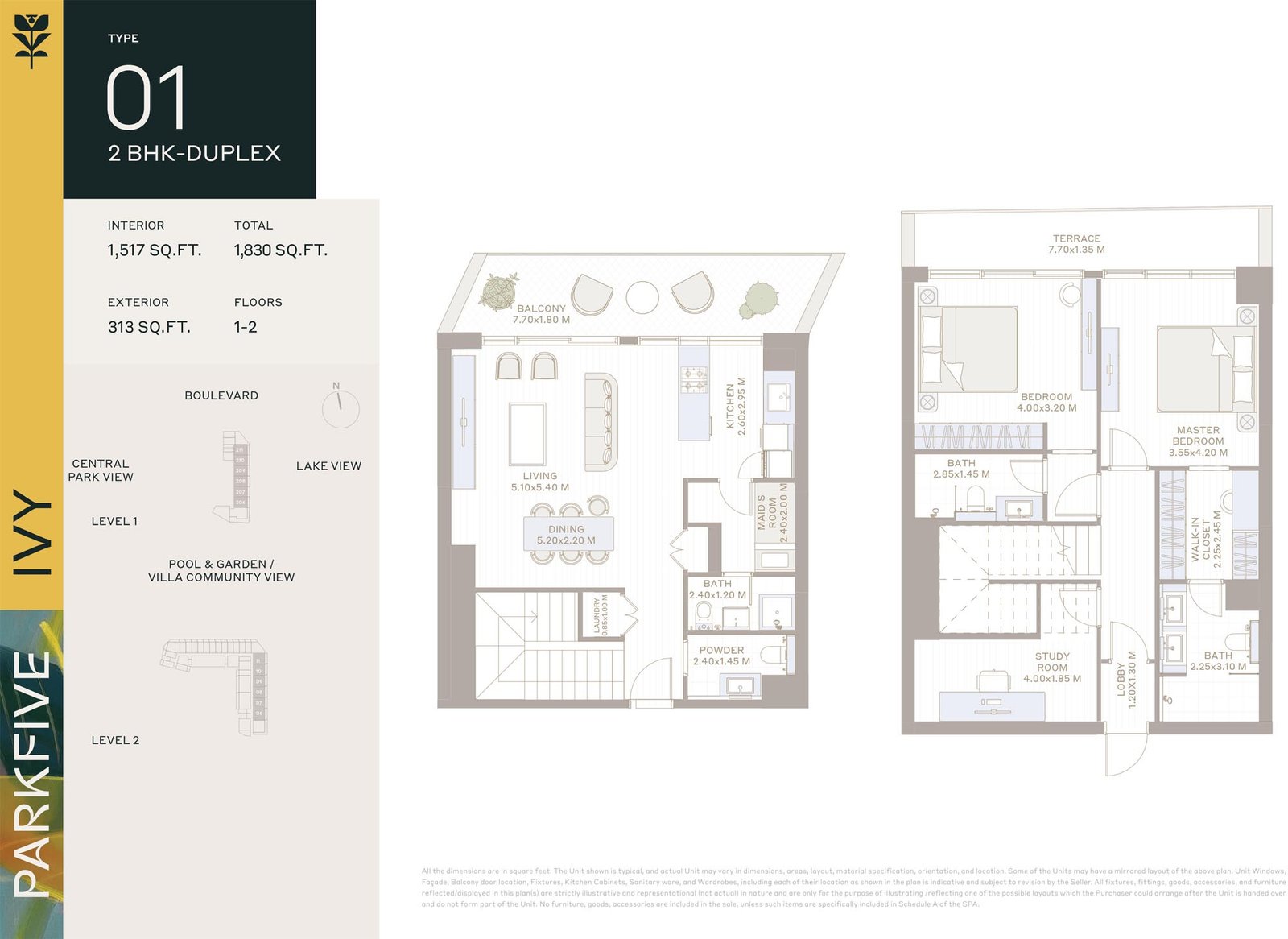 Level 1 & 2 - Type 01 1830.00 Sq Ft Apartment