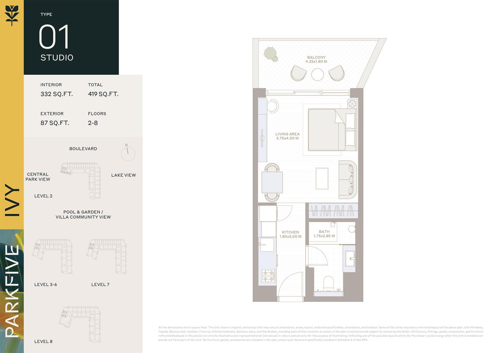 Level 2-8 - Type 01 419.00 Sq Ft Apartment
