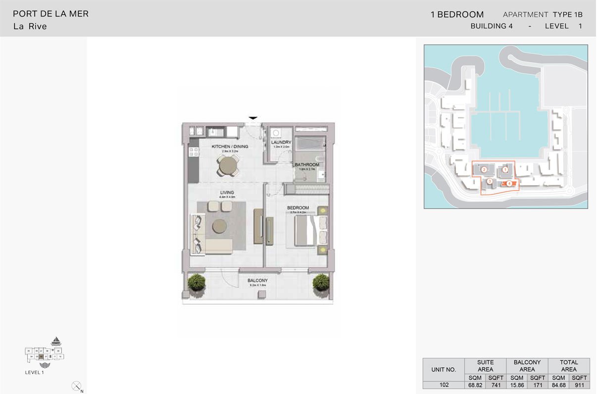 1 Bedroom - 1 Bedroom - Type 1B, Level-1, Size - 911 Sq Ft 911.00 Sq Ft Apartment