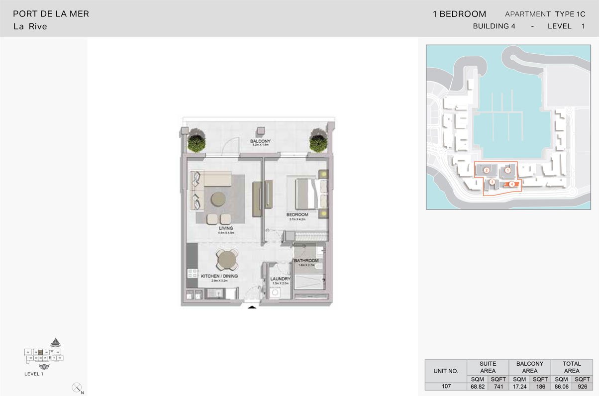 1 Bedroom - 1 Bedroom - Type 1C, Level-1, Size - 926 Sq Ft 926.00 Sq Ft Apartment