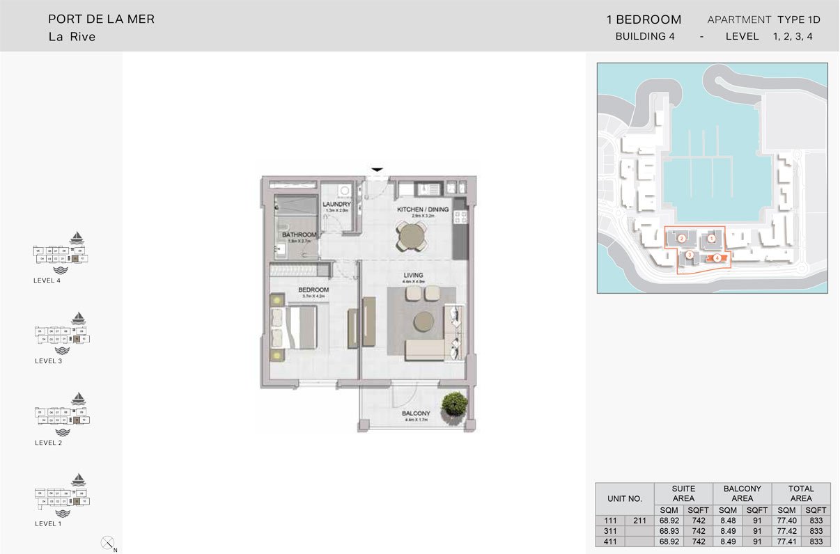 1 Bedroom - 1 Bedroom - Type 1D, Level-1-2-3-4, Size - 833 Sq Ft 833.00 Sq Ft Apartment