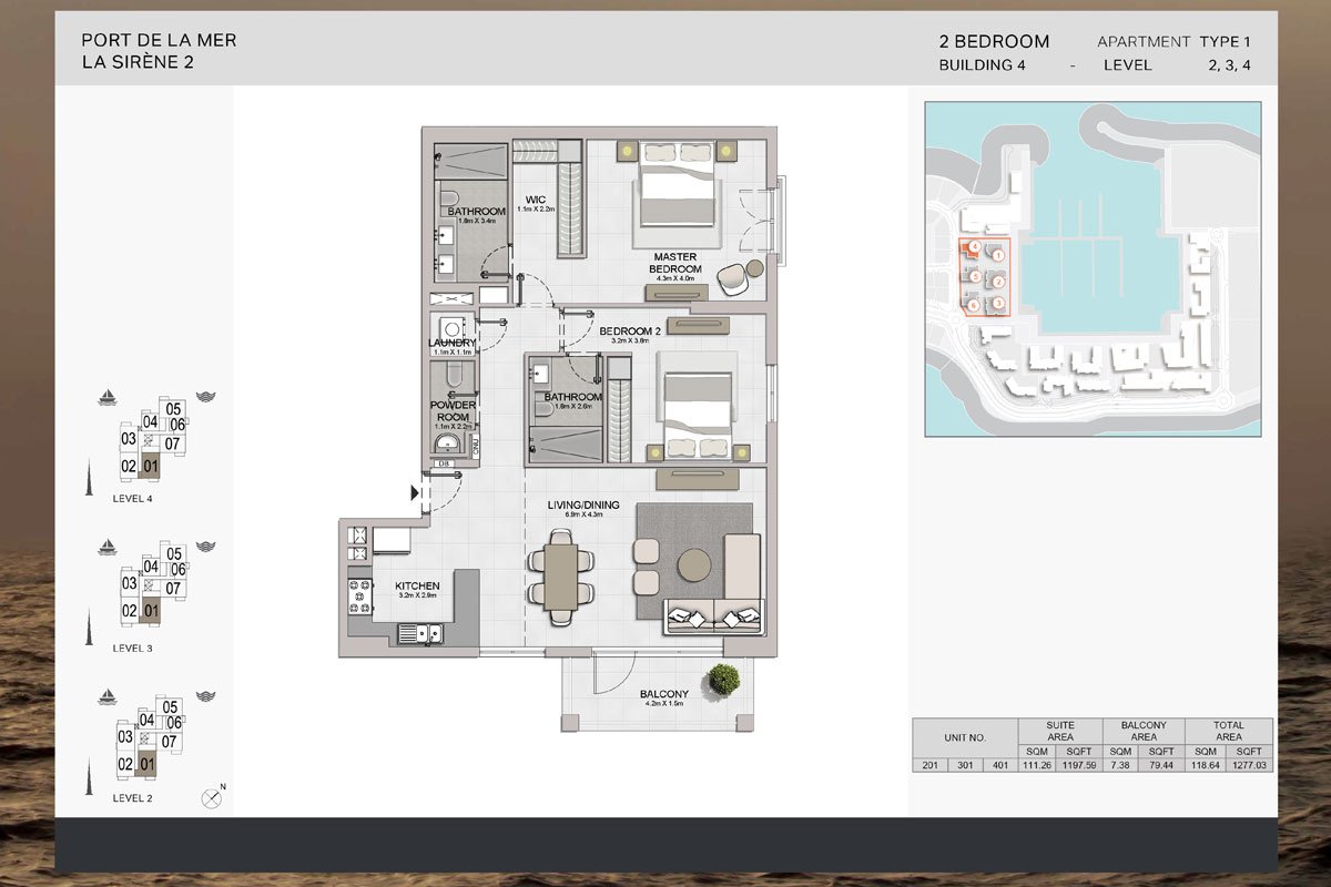 The latest development at Port De La Mer, La Sirene 2, is an exclusive waterfront project by Meraas featuring a select range of 1, 2, and 3-bedroom apartments. Drawing inspiration from the enchanting Mediterranean, this development offers breathtaking views of both the open water and the iconic Dubai skyline. Nestled in the prestigious Jumeirah 1 district, La Mer serves as an inspiring beachfront destination with exceptional connectivity to Dubai's most sought-after attractions. Surrounded by serene coastal waters, the residences elegantly combine vintage architectural elements with contemporary interior design. While maintaining a private atmosphere, residents enjoy proximity to the city's vibrant lifestyle and excellent connectivity. Key highlights include freehold modern apartments, a unique marina promenade fostering a relaxed lifestyle, waterfront dining options right at your doorstep, Mediterranean-inspired architecture, an active lifestyle in a stunning seaside environment, and an exclusive community enveloped by picturesque coastal views of the water and Dubai skyline.