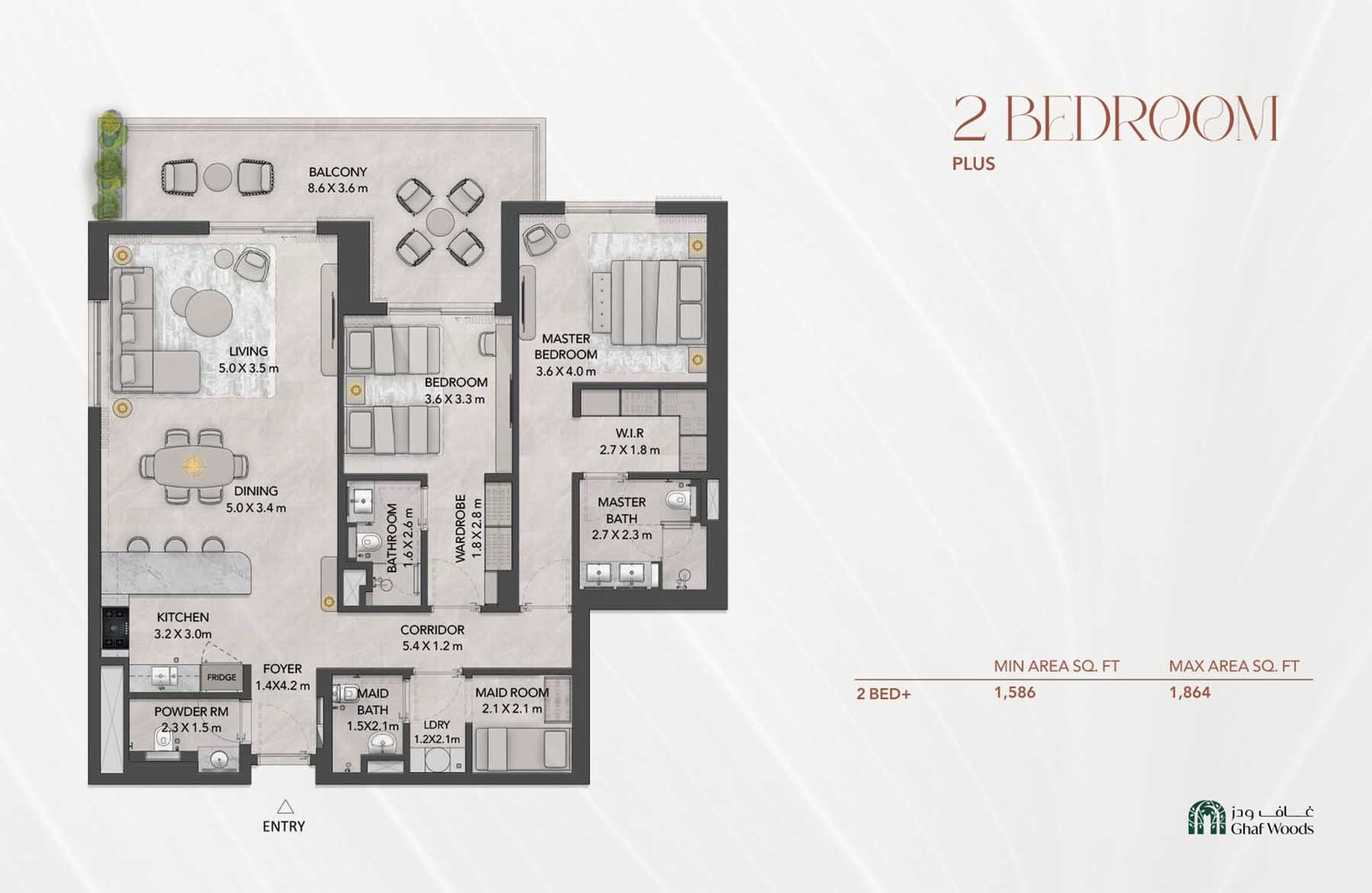 2 Bedroom | - | 2 BR | 1864.00 Sq Ft | Apartment |