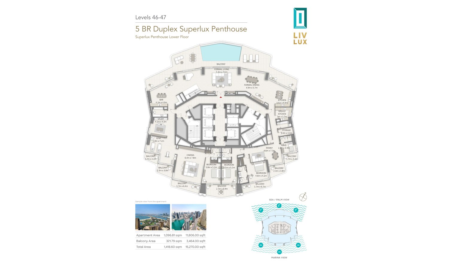 5 Bedroom | - | 5 BR Duplex Superlux, Level 46-47, Lower Floor | 15270.00 Sq Ft | Apartment |