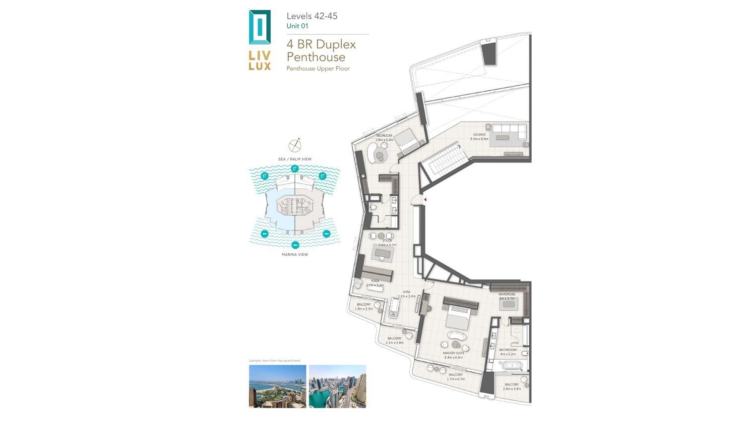 4 Bedroom | - | Duplex, Unit 1, Level 42-45, Upper Floor | 7270.00 Sq Ft | Apartment |