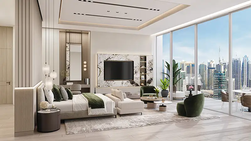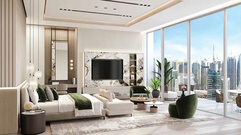LIV LUX is a stunning luxury residential façade situated at Dubai Marina, soaring 47 stories high by LIV Developers. It offers an exquisite selection of 1 to 4-bedroom apartments and penthouses. Indulge in the finest pleasures of life while enjoying refined luxury and iconic views of the cityscape and Palm Jumeirah from expansive open balconies. With full-height windows and generously sized outdoor spaces, residents can relish spectacular vistas of the surrounding landscape, which includes cityscapes, the sea, beautiful water features, parks, and lush greenery. The balconies provide breathtaking views of the Arabian Gulf, while the homes boast magnificent components and fittings. This development features luxury-class apartments, duplexes, and super-lux signature residences outfitted with high-end fixtures. Discover the remarkable design signature collection that elevates luxury through custom-made elevated ceilings and exquisite lighting. Experience a life of purpose that transcends your imagination and expectations, simplifying the everyday while maintaining an extraordinary level of luxury. The interiors are brilliantly designed, and the sophisticated exterior seamlessly blends modern living with natural surroundings. Residents of this luxurious development enjoy a wide range of amenities and services, including rejuvenating pools, parks, gardens, lounge areas, private yoga rooms, and a dedicated spa featuring sauna and steam rooms, alongside numerous leisure activities. Immerse yourself in this exceptional location, offering a variety of premium spots in close proximity to Dubai Marina. Key highlights include beautifully designed 1-4 bedroom apartments and duplex penthouses, a full floor dedicated to amenities and services, breathtaking waterfront views, splendid nearby water features, an attractive and flexible payment plan, all located in the highly sought-after Dubai Marina.