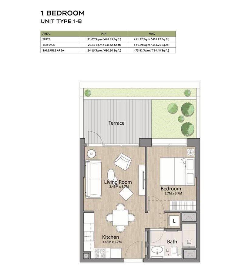 1 Bedroom | - | Type 1-B | 794.48 Sq Ft | Apartment |
