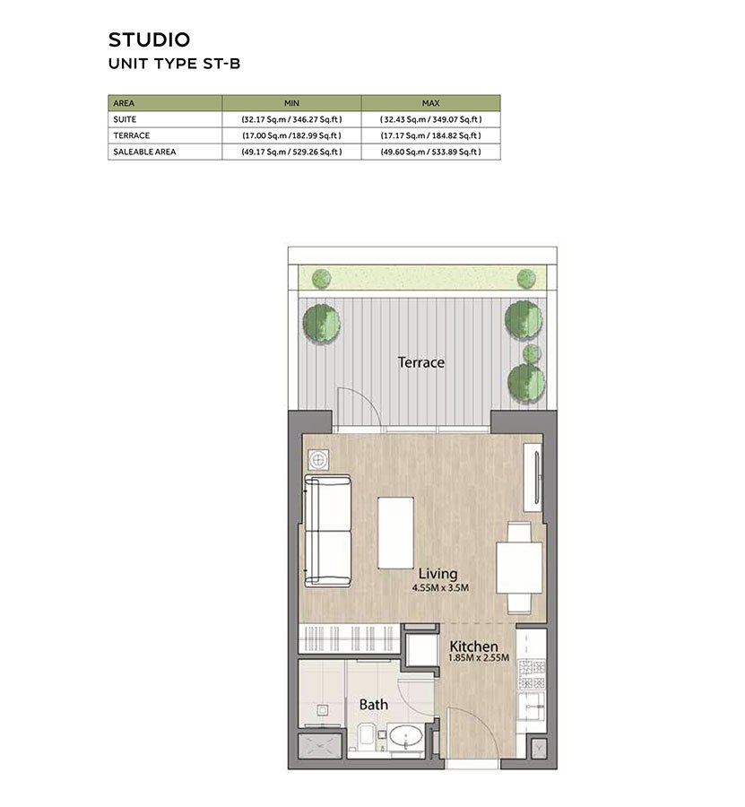 Studio | - | Type ST-B | 533.89 Sq Ft | Apartment |