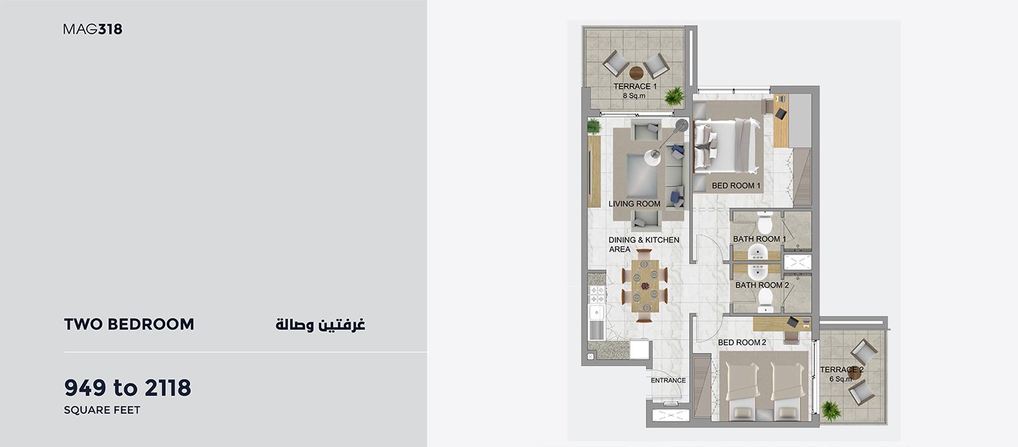 2 Bedrooms | - | 2-Bedroom-2118-Sq Ft | 2118.00 Sq Ft | Apartment |