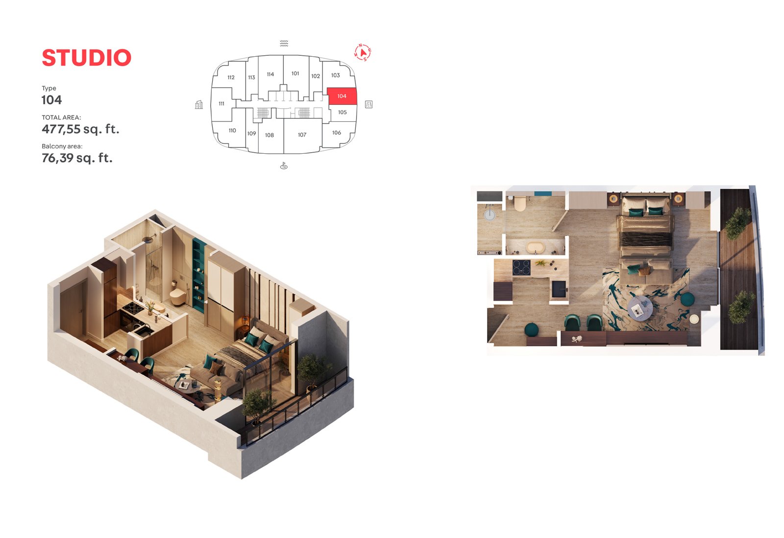 Studio | - | Type 104 | 477.55 Sq Ft | Apartment |
