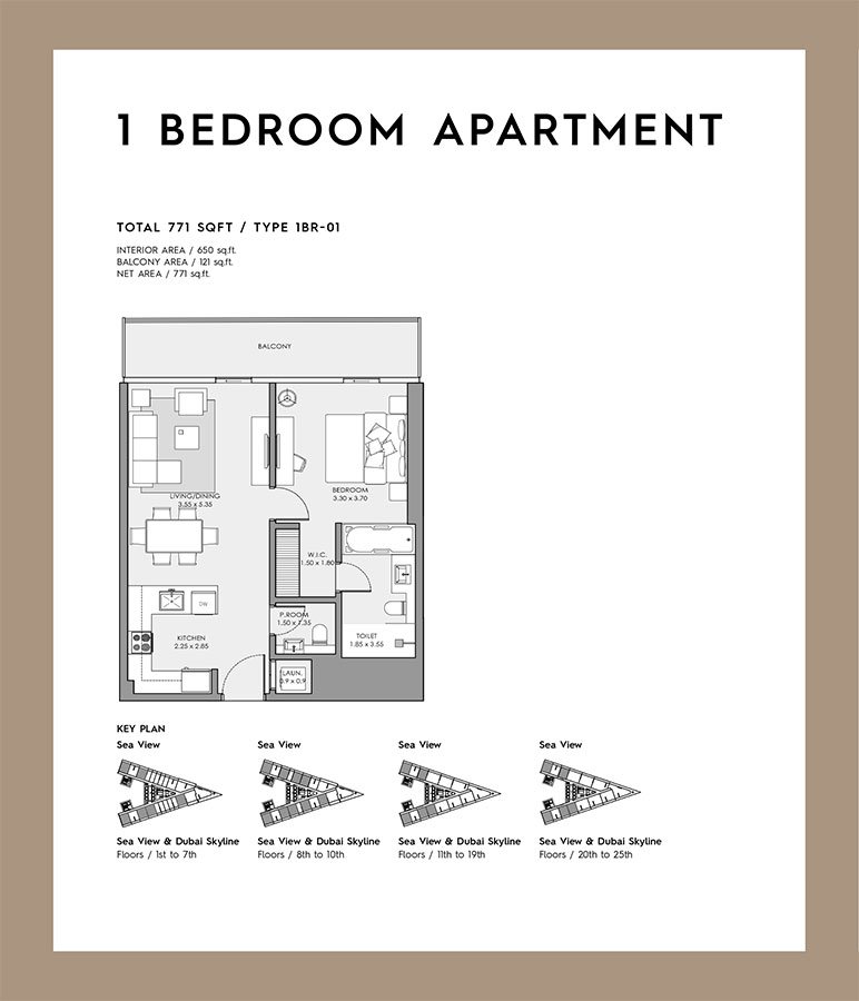 1 Bedroom | - | Type 01 | 771.00 Sq Ft | Apartment |