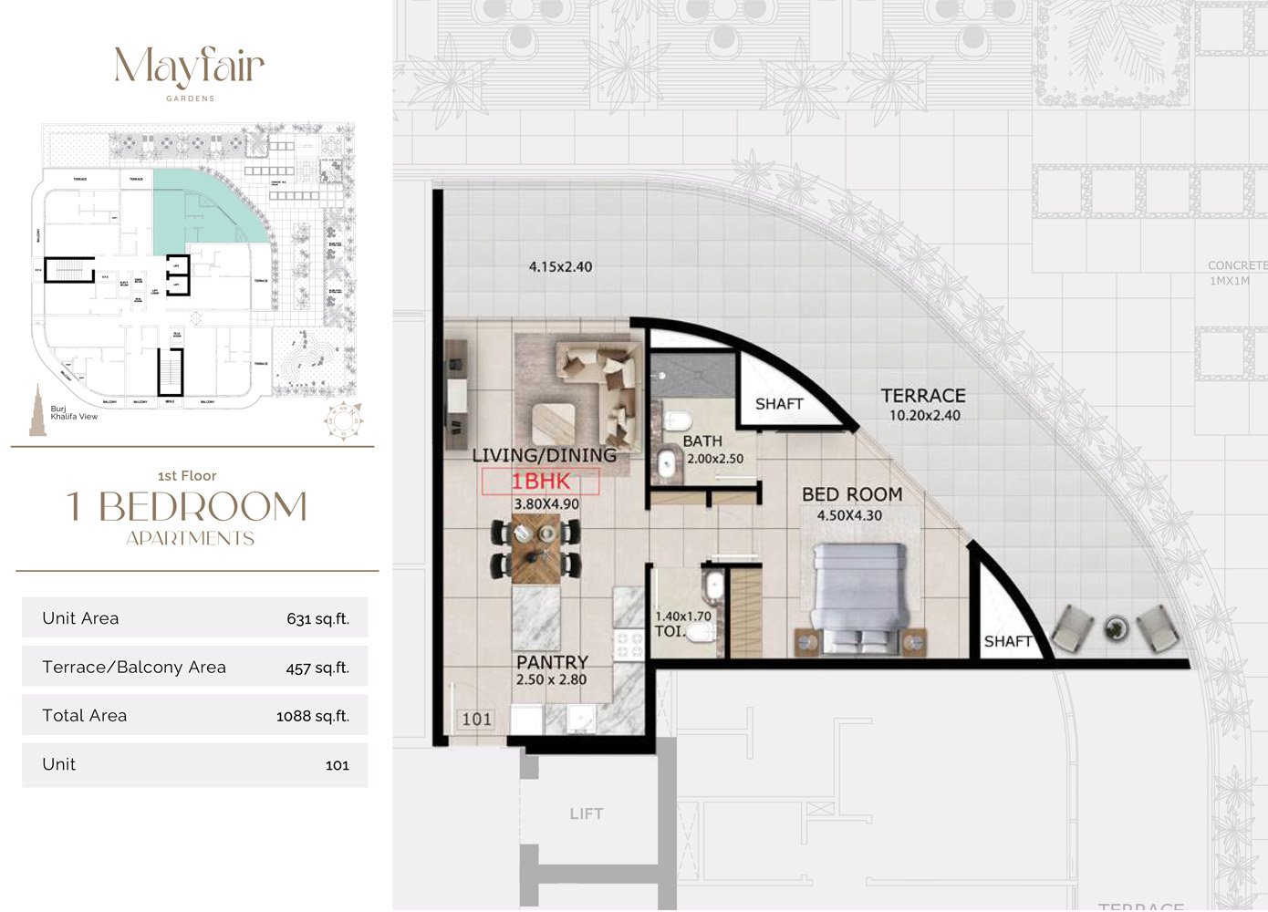 1st Floor | - | Unit - 101 | 1088.00 Sq Ft | Apartment |
