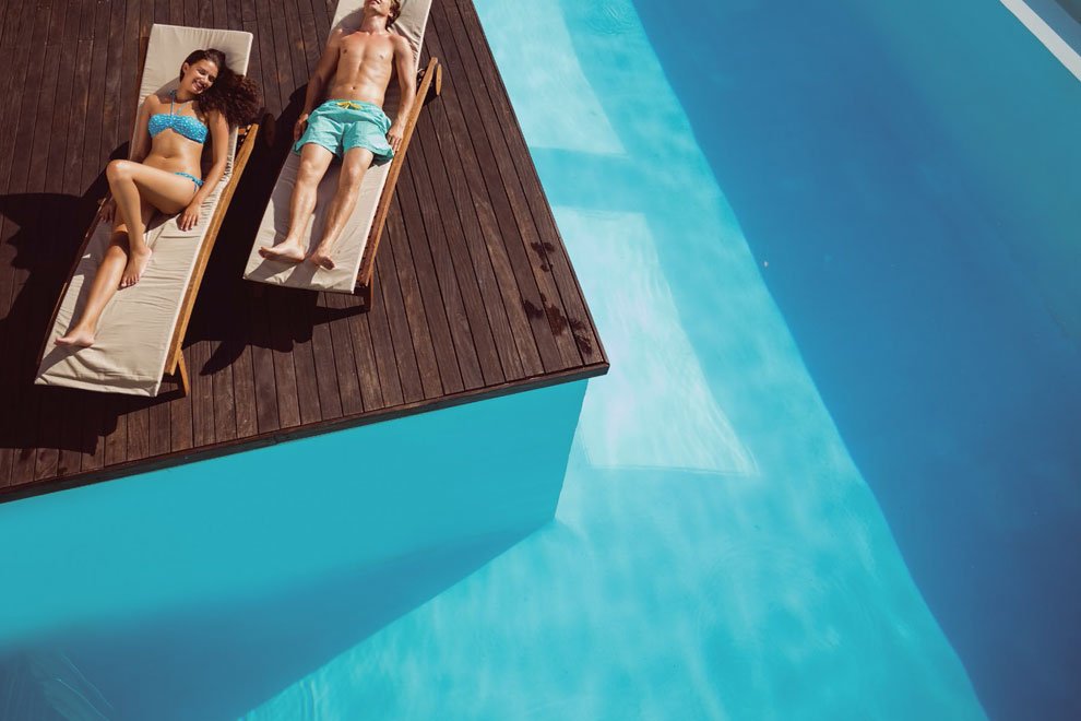 A swimming pool where the water flows over one or more edges.