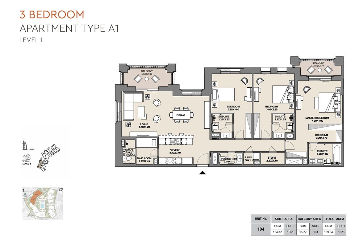 Building 1 | - | Type A1, Level 1, Unit No-104 | 1825.00 Sq Ft | Apartment |
