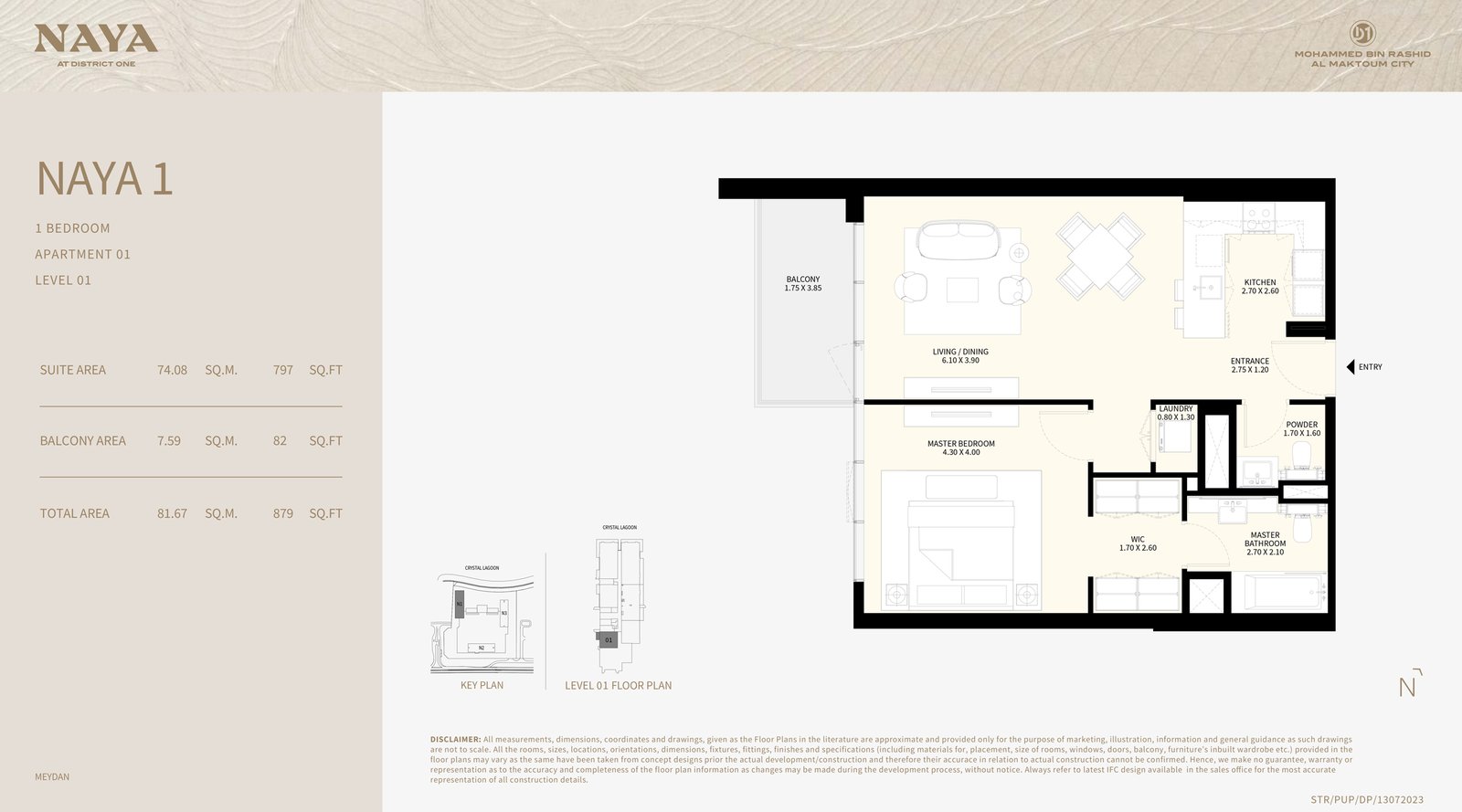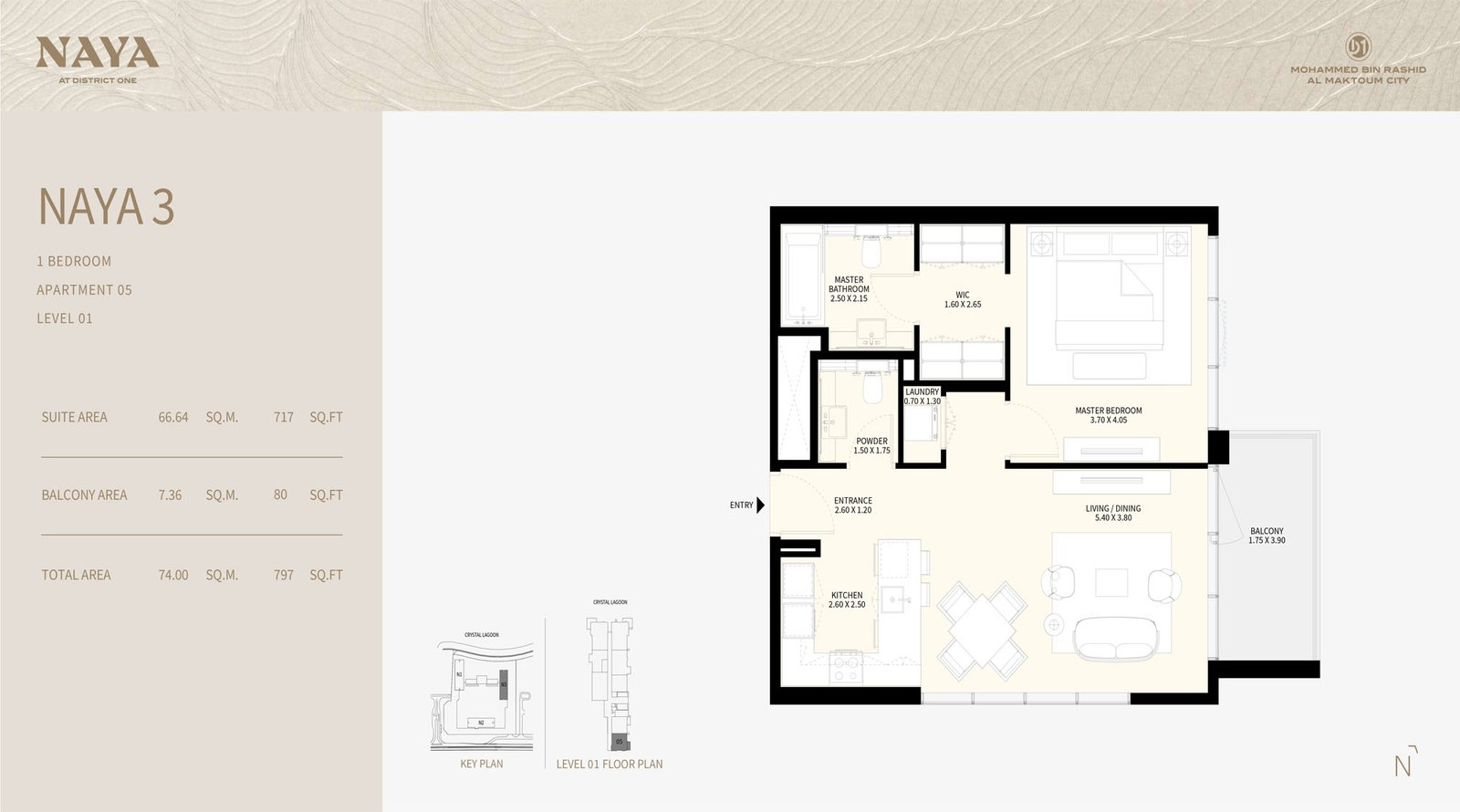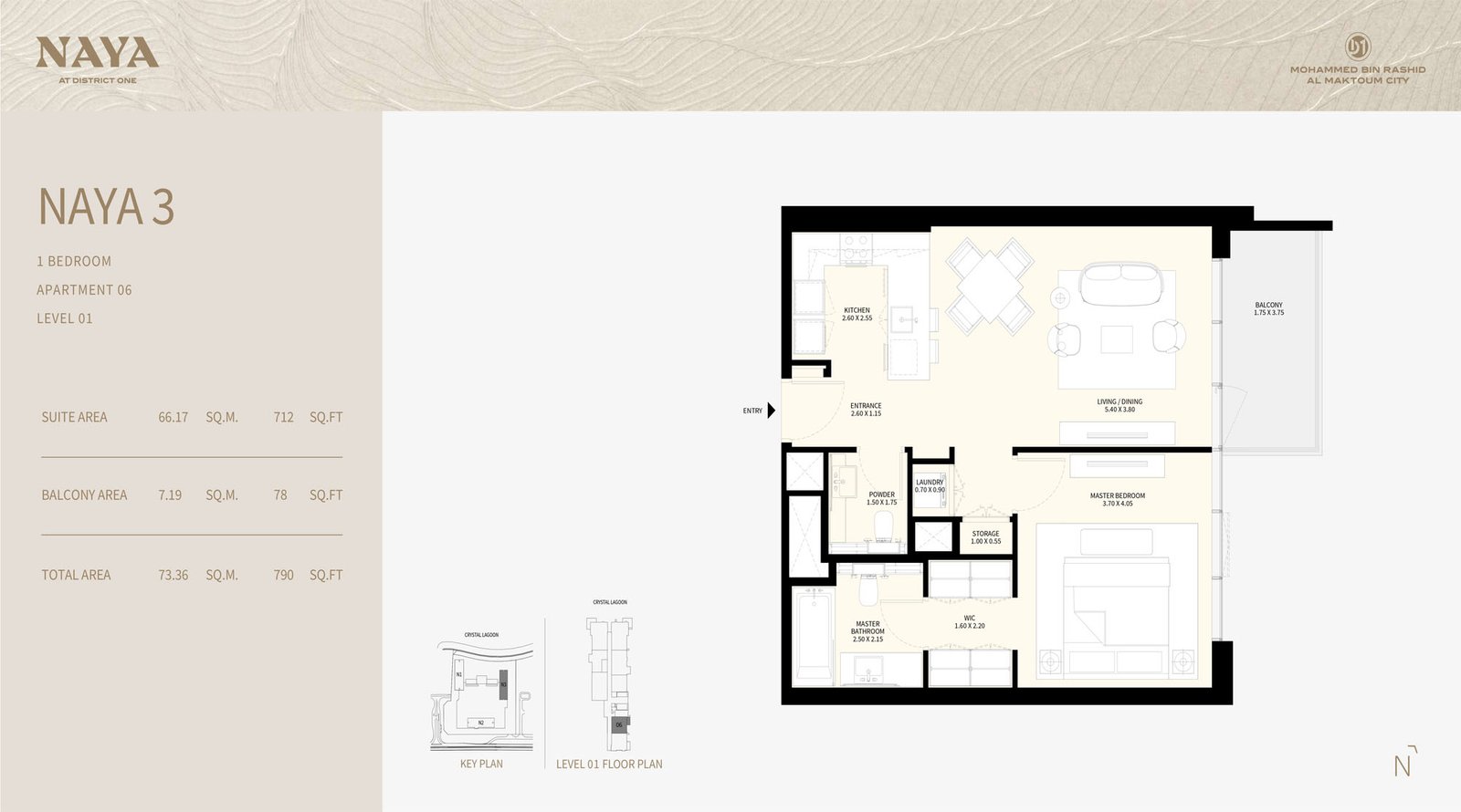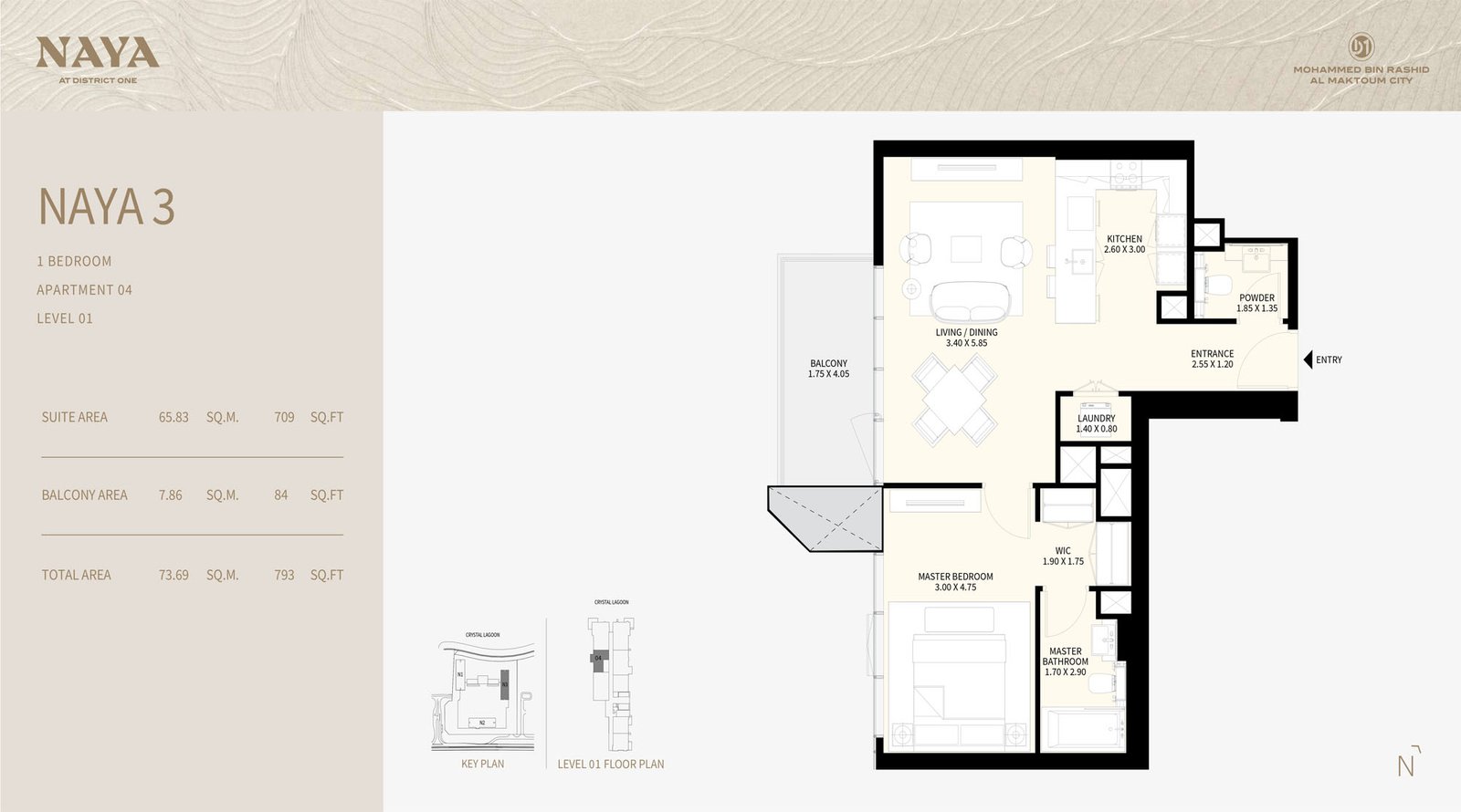 Embark on a remarkable residential journey with Naya at District One (D1), a stunning new development by Nakheel that features premium 1 to 4 bedroom apartments and 3 bedroom villas in MBR City, Dubai. This exclusive complex comprises three architecturally distinctive towers adorned with striking glass facades, providing residents with access to serene beachside settings and tranquil lagoons, thereby redefining luxury living. The elegant towers rise to 12, 16, and 19 floors, each offering breathtaking views of the crystal lagoon and the iconic Dubai skyline. Strategically located at District One (D1), residents benefit from seamless access to major highways, making it convenient to explore the city. The community boasts 8.4 kilometers of cycling and running tracks, surrounded by lush green spaces, all illuminated by eco-friendly solar lighting at night. Residents have the advantage of being close to leisure attractions such as the Meydan Racecourse and Grandstand, the Golf Course, and Meydan One Mall. Spanning 24,000 square meters, this development provides a unique living experience with its distinctive green-roof residential towers. Each tower features elegant lobbies that ensure a secure and monitored entrance 24/7 for the safety of residents. Emphasizing an outdoor lifestyle, the community is rich in amenities that promote well-being, relaxation, and entertainment. Designed for an elevated living experience, it offers a wellness-focused lifestyle along the pristine shores of a man-made crystal lagoon. This gated community allows residents to indulge in a variety of amenities that support healthy outdoor living. The exquisitely designed lagoon-facing apartments and villas present unparalleled views of the District One community. Additionally, residents of the four-bedroom apartments can unwind in oversized soaking tubs while enjoying sparkling skyline vistas, and host gatherings in grand layouts adorned with high-end fixtures. Experience a new standard of luxury living complemented by a comprehensive selection of amenities that enhance the resident experience. Sprawling green spaces and a rooftop lounge with a terrace in Tower 1 create an ideal setting for relaxation. The state-of-the-art fitness center, infinity pool, shaded children's pool, and playgrounds cater to residents of all ages. Sports enthusiasts will appreciate the basketball court and sports court, while the expansive cycling and running tracks encourage an active lifestyle. The entire community is secure and gated, offering peace of mind to residents. Key highlights include a luxury collection of 1, 2, 3, and 4 bedroom apartments and 3 bedroom villas with lagoon views, three luxurious residential towers linked by leisure areas, expansive terraces in each tower for enjoying serene surroundings, a rooftop lounge in Tower 1 for social gatherings, shallow pool cabanas and lounge seating for relaxed days by the pool, flexible payment plans that simplify ownership, over 8.4 kilometers of beautifully landscaped cycling and running tracks, lush green corridors with more than 60% of the area dedicated to nature, and a unique shared green roof that features beautifully landscaped areas for outdoor relaxation.