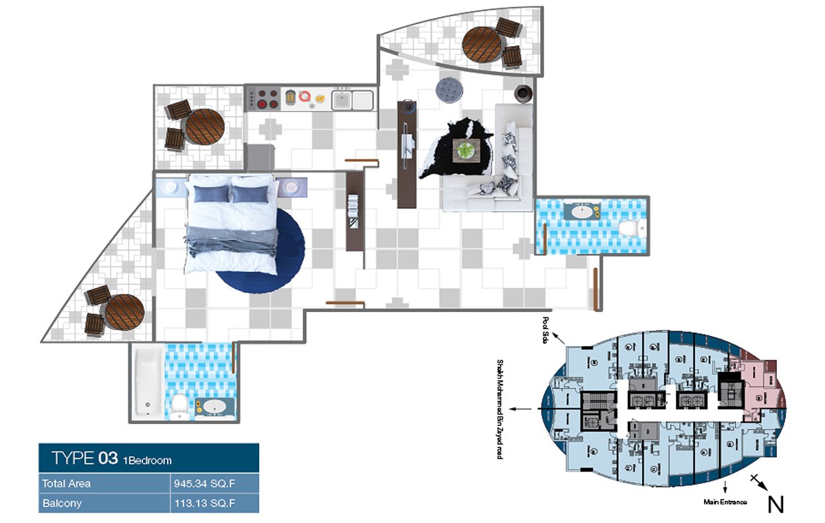 1 Bedroom - type-03-1 bed 945.34 Sq Ft Apartment