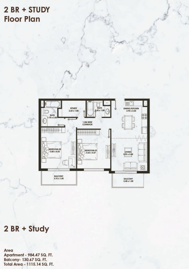2 Bedroom | - | 2 BR | 1115.14 Sq Ft | Apartment |