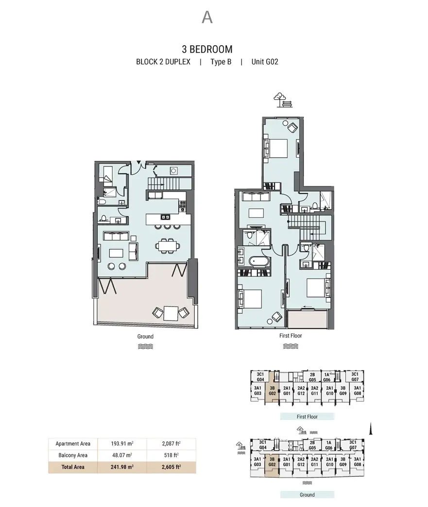 Block 2 Duplex | - | A, Block 2 Duplex, Type B, Unit G02 | 2605.00 Sq Ft | Apartment |