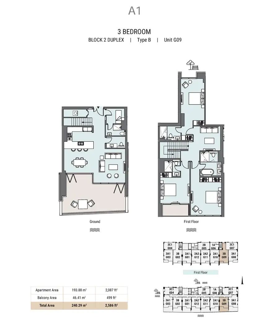 Block 2 Duplex | - | A1, Block 2 Duplex, Type B, Unit G09 | 2586.00 Sq Ft | Apartment |