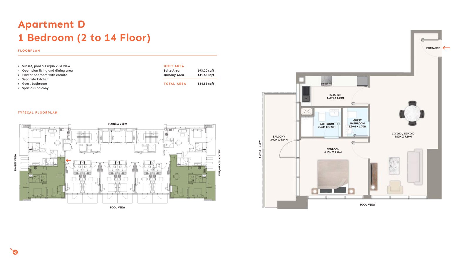 1 Bedroom | - | 2nd to 14th Level | 834.85 Sq Ft | Apartment |