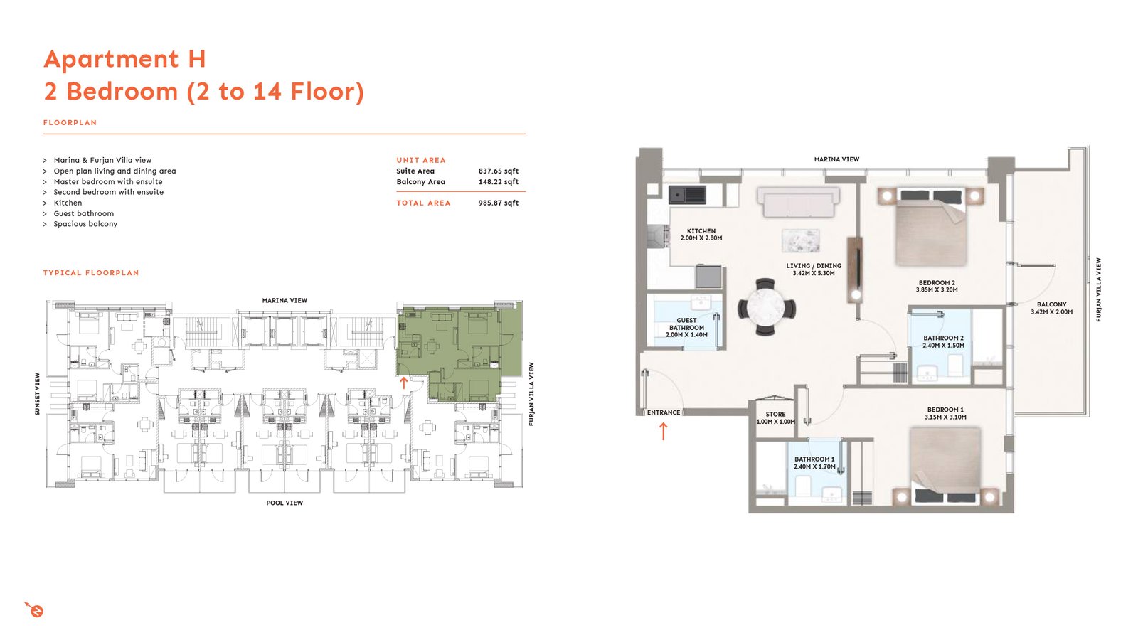 2 Bedroom | - | 2nd to 14th Level | 985.87 Sq Ft | Apartment |