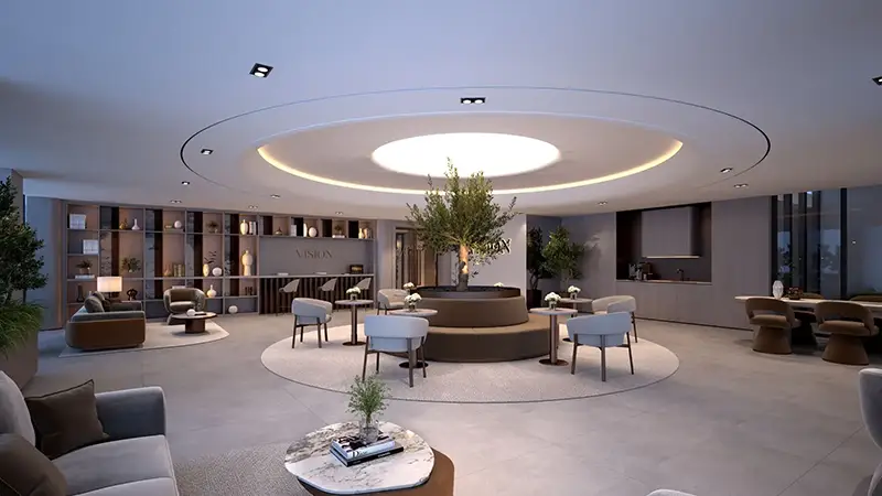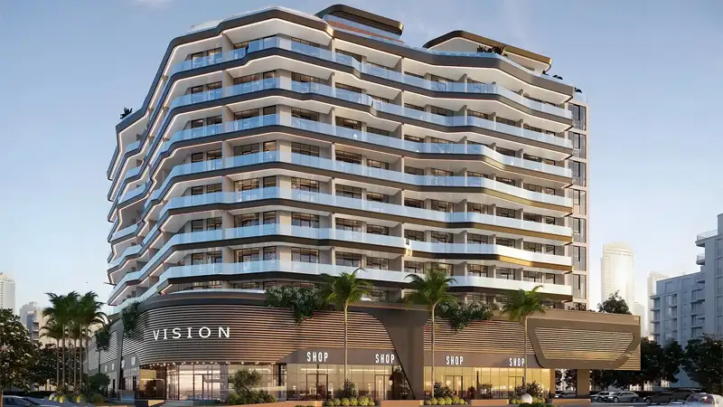 Brought to life against a striking backdrop, Reem by Vision Developments presents a vision of the future in Liwan, Dubai, featuring premium studios and 1, 2, and 3-bedroom apartments. The initial impression of the project showcases smooth lines and a sculptural silhouette, inspiring admiration for its harmonious blend of form and function. The exterior confidently embodies the essence of a sophisticated, progressive home, characterized by its sleek, clean lines and gentle curves. Inside, the interiors redefine modern luxury living, offering open spaces flooded with natural light that enhances the carefully selected materials. Expansive floor-to-ceiling glass windows invite the outdoors in, while warm timber and metallic tones create a sense of richness. The residential environments tell a story of openness, thoughtfully designed for relaxation, social interaction, and daily routines, all wrapped in a palette that subtly suggests modernity. A clear path for circulation and movement enhances the aesthetic experience of the space. Kitchens evolve into inviting living areas, while bedrooms provide a tranquil retreat, equipped with high-performance glazing, built-in wardrobes, and innovative layouts. The craftsmanship is seamless and purposeful, reflecting a home that is both minimalistic and meticulously curated. Balconies and courtyards extend the living experience beyond the walls, offering intimate views of landscaped gardens or vibrant city scenes. Attention to detail, such as recessed lighting that accentuates textures and bespoke wall coverings, imbues each corner with unique character. The design merges functionality with minimalist aesthetics, elevating everyday life through luxurious touches. Strategic lighting emphasizes the building’s geometry, while gentle interior illumination invites warmth and reflection. The outdoor gardens are softly lit, creating a serene ambiance that feels exclusive yet connected to its surroundings. This is not merely a building; it represents a curated lifestyle where every line, surface, and light is intentional and reflects high-end living. The spaces are crafted not just for occupancy, but to be fully experienced.