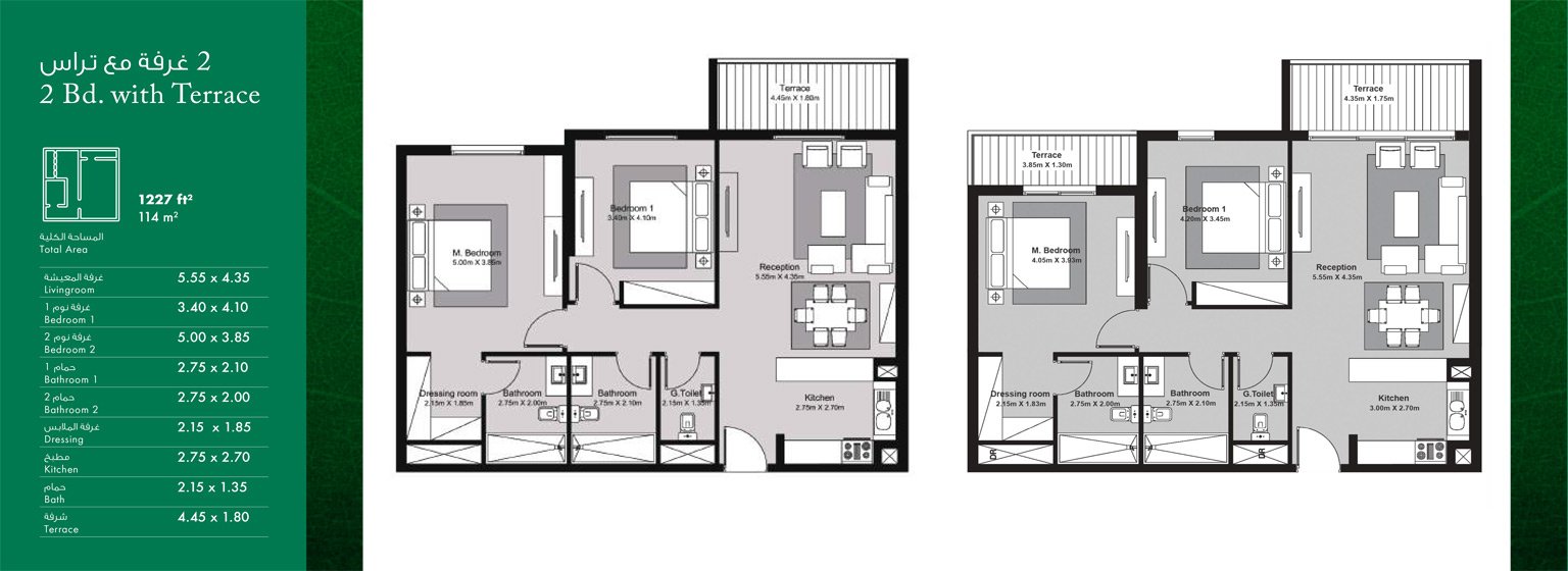 2 Bedrooms | - | 2 Bed-with-terrace | 1227.00 Sq Ft | Apartment |
