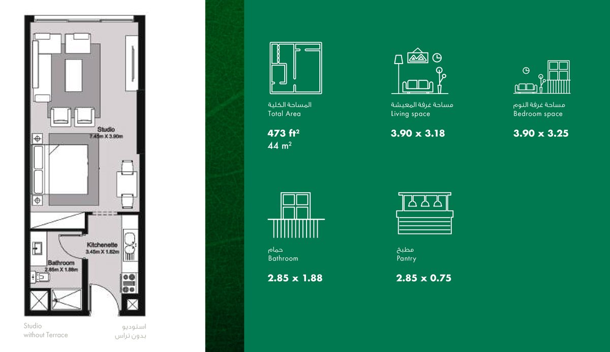 Studio | - | Studio-without-terrace | 473.00 Sq Ft | Apartment |