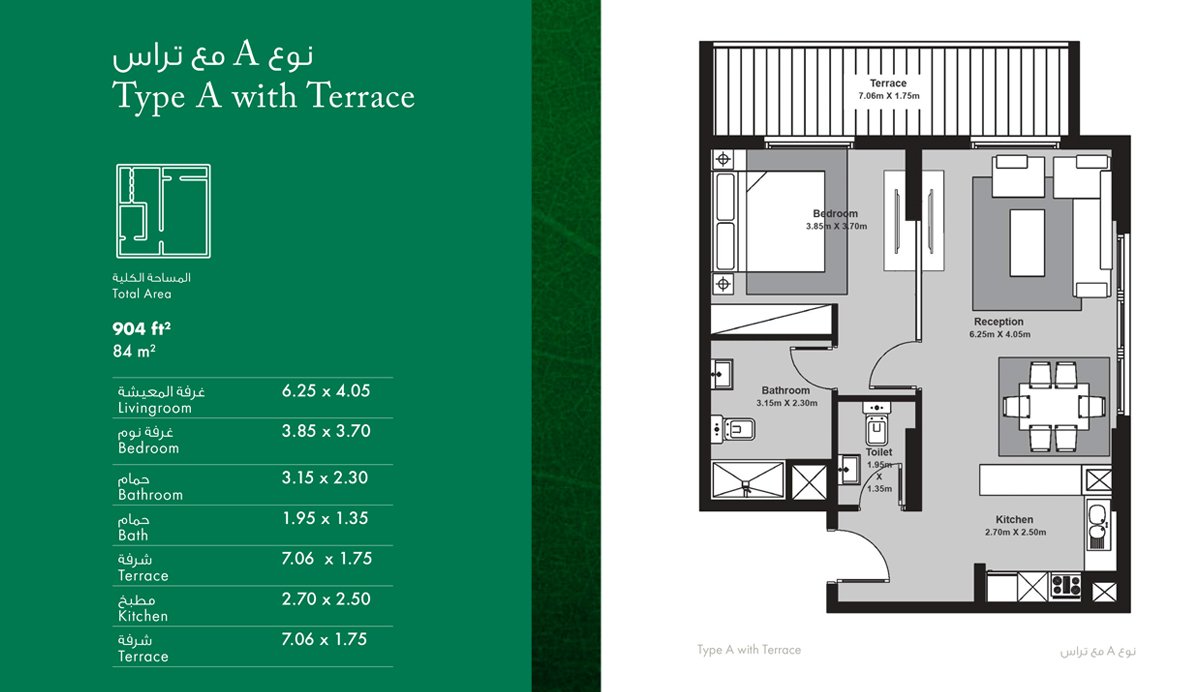 1 Bedroom | - | Type A-with-terrace | 904.00 Sq Ft | Apartment |
