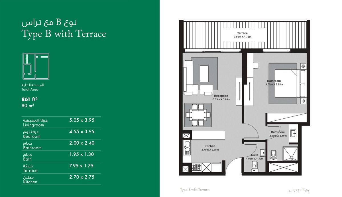 1 Bedroom | - | type B-with-terrace | 861.00 Sq Ft | Apartment |