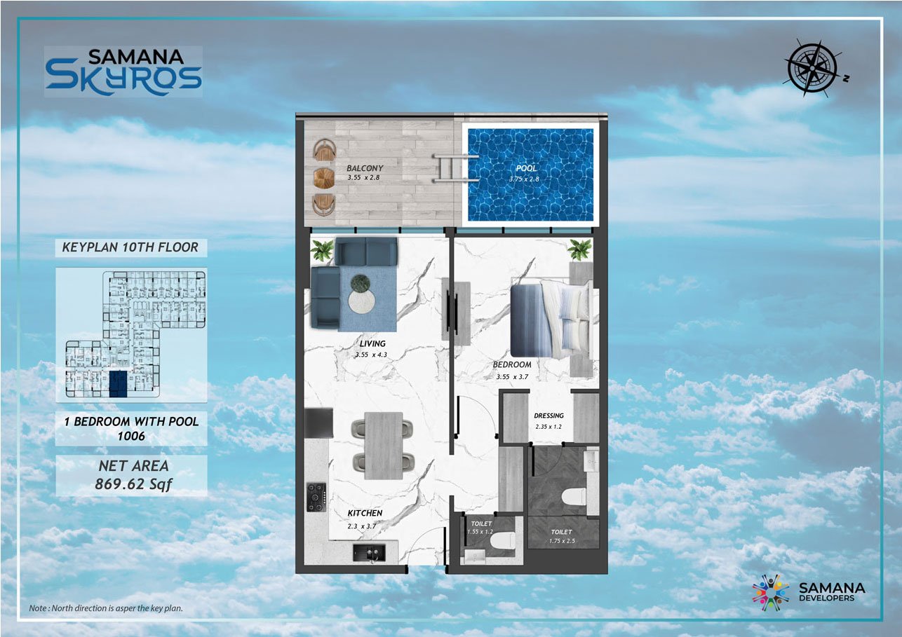 10th Floor | - | 10th Floor, 1bhk with Pool 1006 | 869.62 Sq Ft | Apartment |