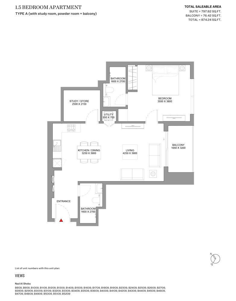 Tower B | - | Type A | 874.24 Sq Ft | Apartment |