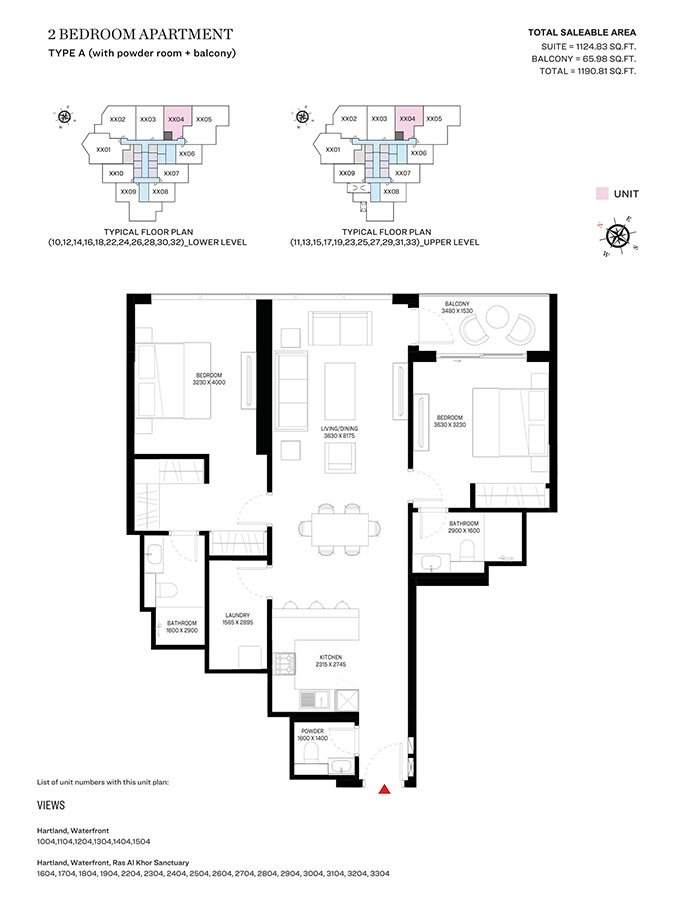 2 Bedroom | - | Type A | 1190.81 Sq Ft | Apartment |