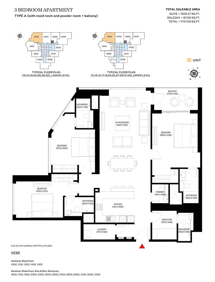 3 Bedroom | - | Type A | 1747.09 Sq Ft | Apartment |