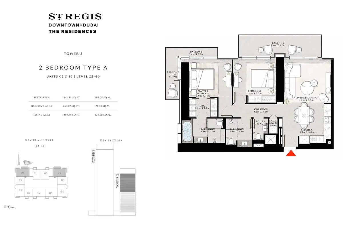 Tower 2 | - | Type A, Unit 02 & 10, Level 22-40 | 1409.86 Sq Ft | Apartment |