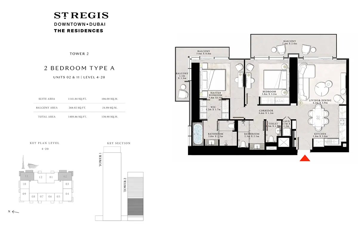Tower 2 | - | Type A, Unit 02 & 11, Level 4-20 | 1409.86 Sq Ft | Apartment |