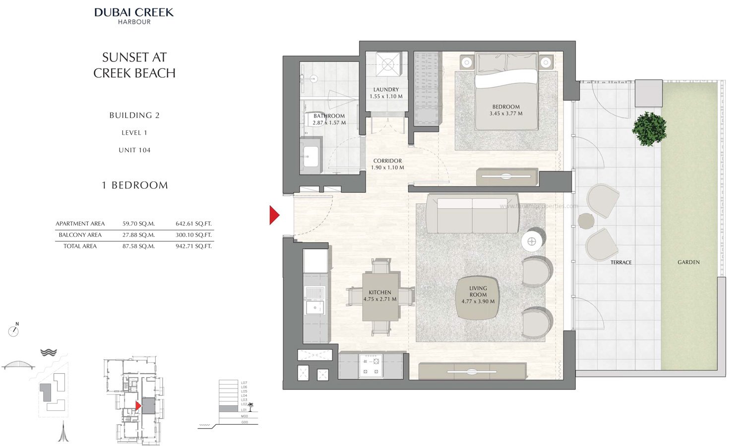 1 Bedroom | - | Building 2 - 1 Bedroom Level 1 Unit 104, Size 942.71 sq ft | 942.71 Sq Ft | Apartment |