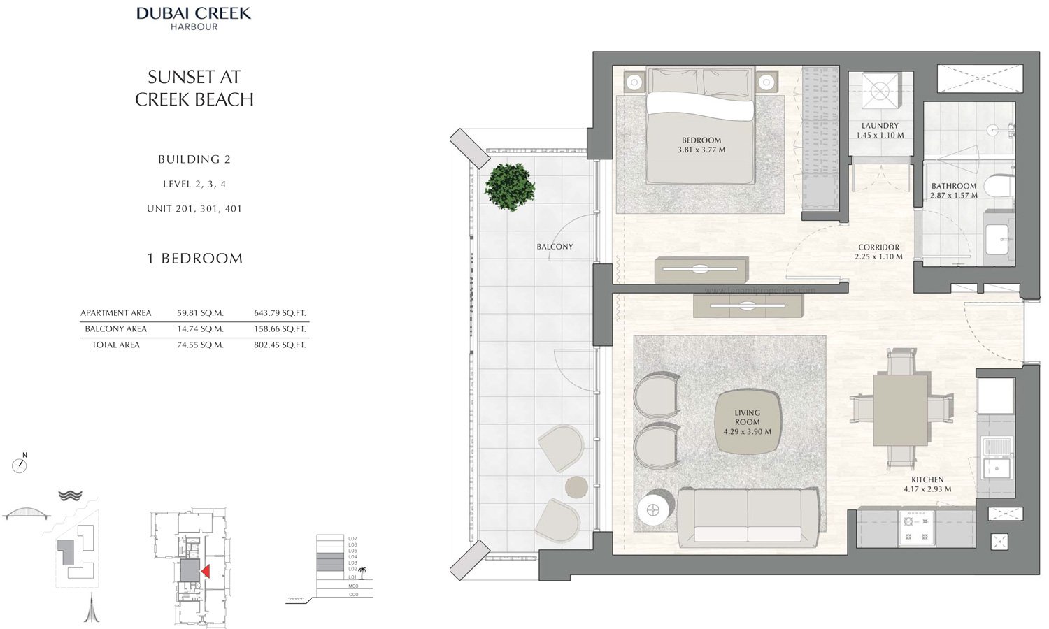 1 Bedroom | - | Building 2 - 1 Bedroom Level 2 To 4 Unit 201-301-401, Size 802.45 sq ft | 802.45 Sq Ft | Apartment |