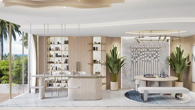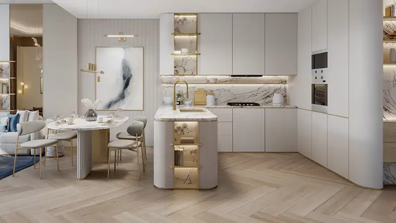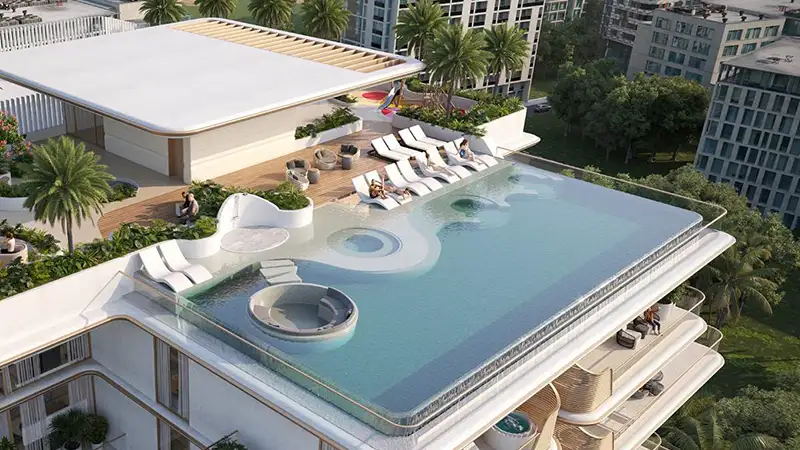 Sunset Bay 4 by Imtiaz Developments at Dubai Islands sets a new standard in coastal residential living with its stunning collection of 1 to 3-bedroom apartments. Step into a paradise where sophisticated living harmonizes with the tranquility of the sea and the vibrancy of nature. This property is the latest testament to the developer's commitment to excellence, featuring a low-rise architectural marvel that merges coastal charm with urban sophistication. Residents can enjoy high-end amenities, beautifully landscaped podiums and balconies, and an impressive entrance leading to a private rooftop retreat, making it an ideal sanctuary for families. Elevating the concept of coastal living, this exquisite haven showcases luxurious finishes and timeless materials, seamlessly integrating modern design with masterful craftsmanship. The balconies are meticulously aligned, boasting striking lines and smooth white curves, complemented by glass railings and windows that enhance the views and create a lively, holistic atmosphere. Each element of the radiant façade is designed to infuse daily life with the serenity of the shore. Experience your personal sanctuary in these grand homes, where all bedrooms feature elegant details, ample wardrobes, and spacious layouts with thoughtfully designed finishes for ultimate comfort. The expansive living areas are bathed in natural light, offering curated seating arrangements and breathtaking views of the lush outdoors and coastline. Dining spaces and kitchens are equipped with high-quality lighting and seamless designs, ensuring functional accessibility and a premium culinary experience. Enter the sumptuous foyer, which radiates timeless elegance, and discover a stylish lounge inviting you to relax in luxurious comfort, blending style with sophistication. A fully-equipped gymnasium, featuring smart fitness technology, is located at the podium level, providing illuminated spaces with direct views of the lush surroundings. The rooftop area boasts an infinity pool with sunken lounges and seating designed for ultimate leisure and a vibrant, healthy lifestyle. Additional amenities include a clubhouse with a ping pong table, a children's play area, an outdoor dining and BBQ space, water features, and outdoor showers, all designed to enhance your everyday living experience. Explore the island's rich offerings, where residents enjoy a blend of natural and man-made amenities, perfect for socializing and discovery. You're mere moments from the Blue Flag sandy beach and close to one of the island's active marinas, promising unmatched aquatic adventures. The island is also adorned with parks and lush open spaces, designed to foster tranquility, connection, and unforgettable moments. Upscale leisure options abound, with numerous hotels and resorts, shopping malls, and two magnificent golf courses for exciting hospitality and shopping experiences.