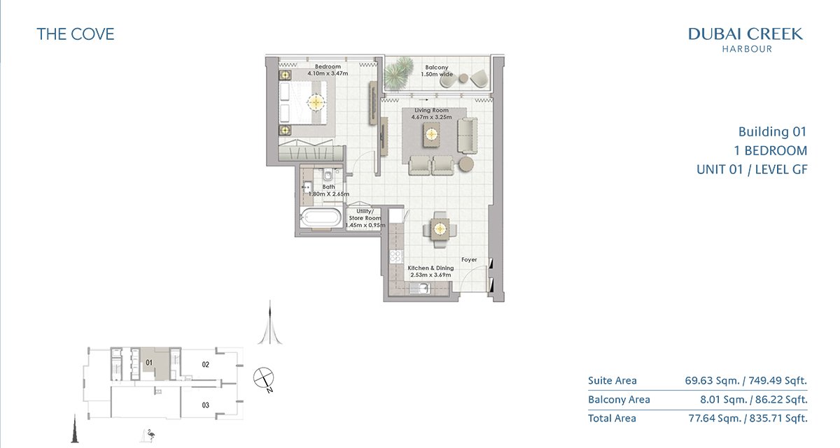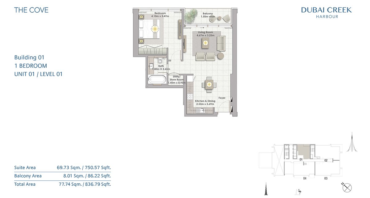 Building 1 | - | 1 bed-U1-level-01 | 836.79 Sq Ft | Apartment |