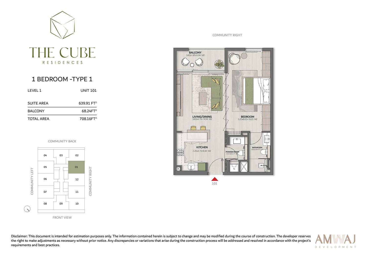 Level 1 | - | Unit 101 (Type 1) | 708.16 Sq Ft | Apartment |