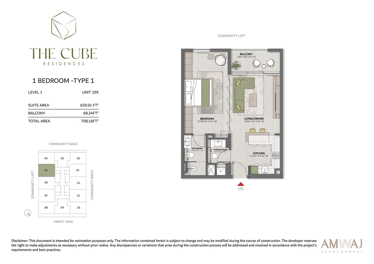 Level 1 | - | Unit 105 (Type 1) | 708.16 Sq Ft | Apartment |