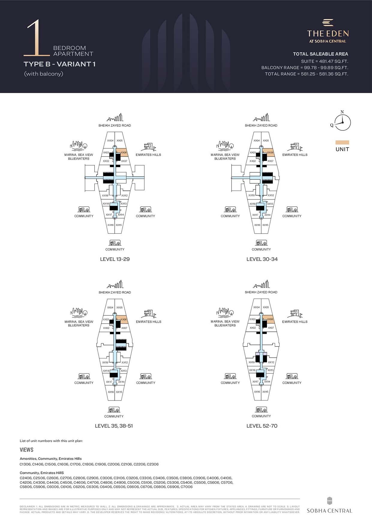 Typical Floor Plan | - | LEVEL 13-70 TYPE B-VARIANT 1 | 581.36 Sq Ft | Apartment |