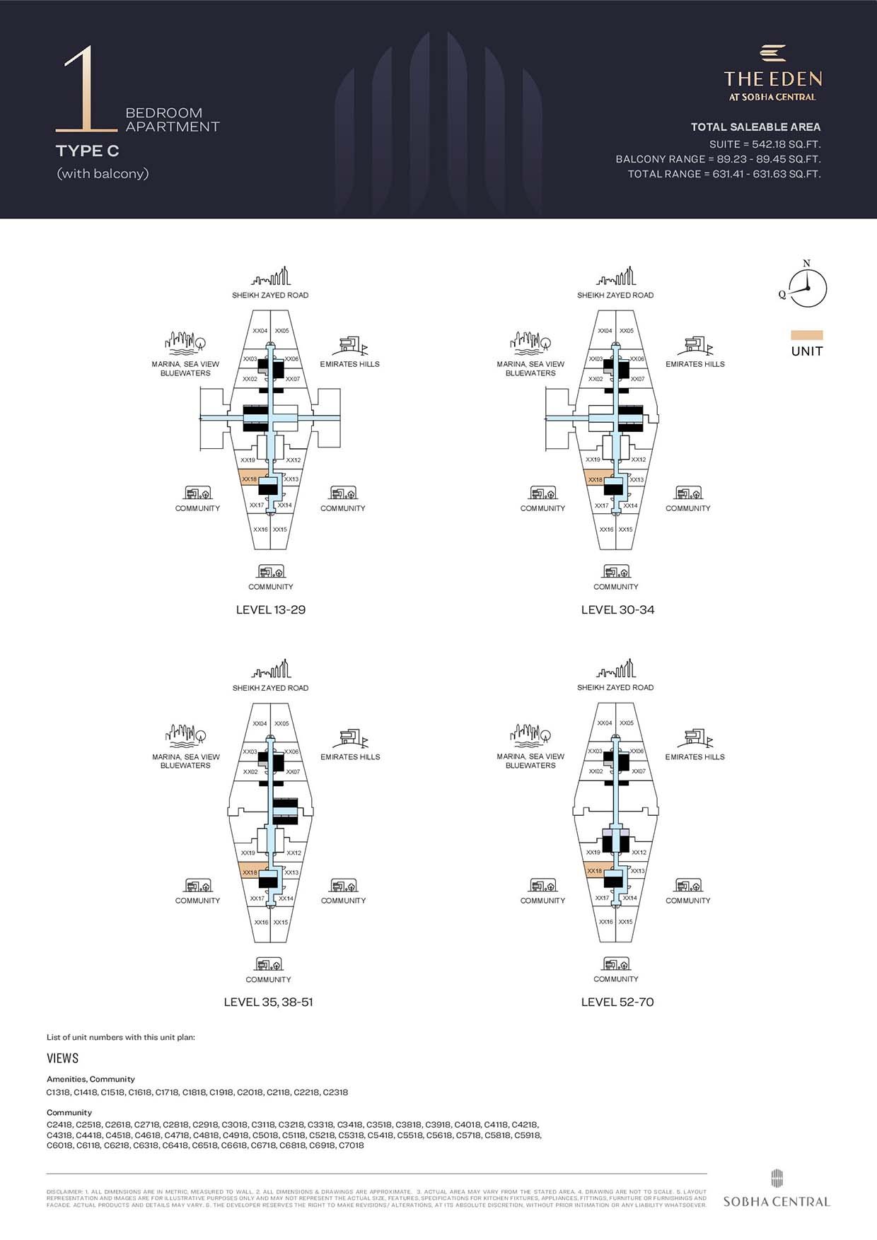 Typical Floor Plan | - | LEVEL 13-70 TYPE C | 631.63 Sq Ft | Apartment |