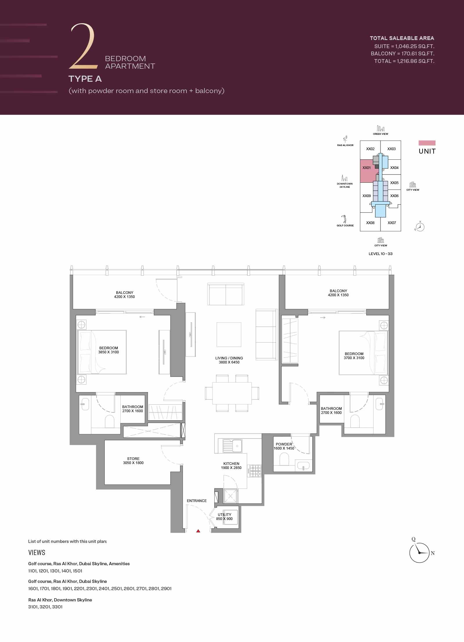 LEVEL 10-33 | - | TYPE A | 1216.86 Sq Ft | Apartment |