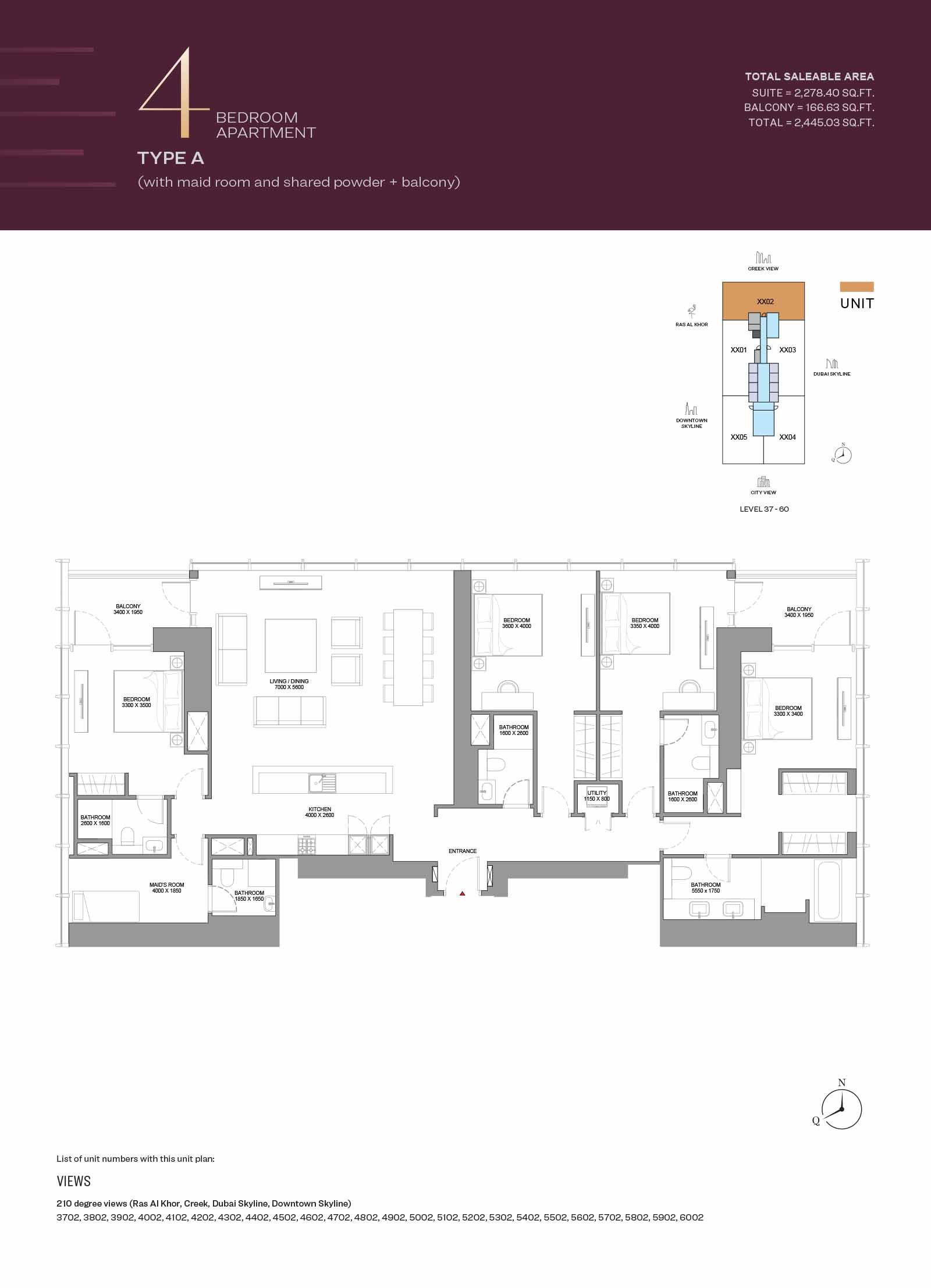 LEVEL 37-60 | - | TYPE A | 2445.03 Sq Ft | Apartment |