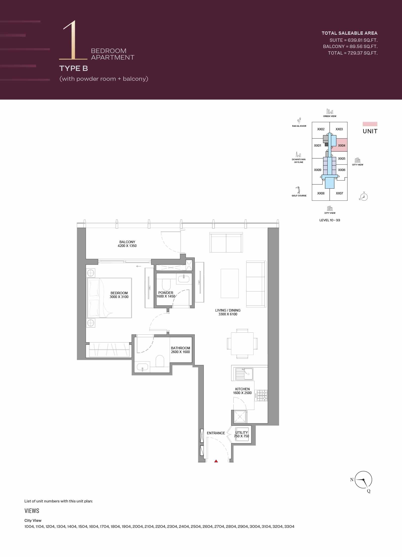 LEVEL 10-33 | - | TYPE B | 729.37 Sq Ft | Apartment |