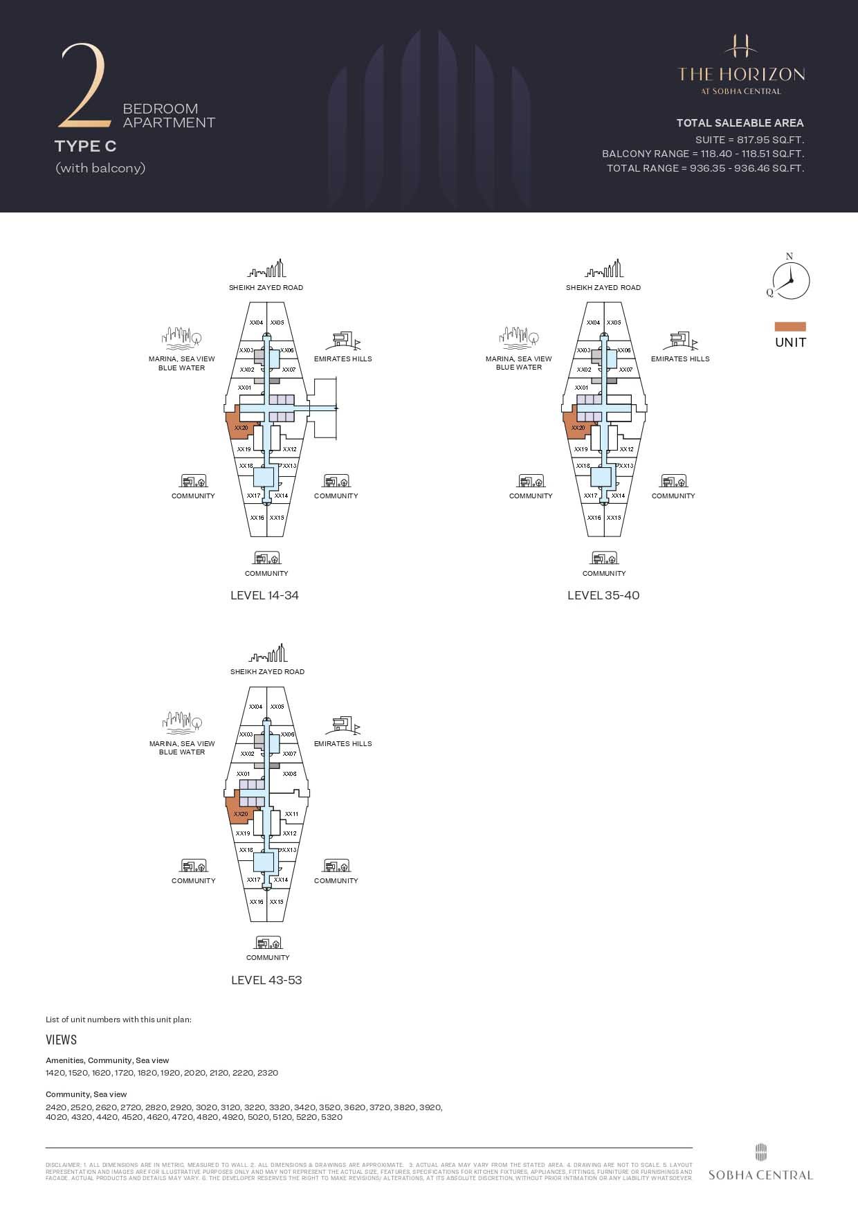 Typical Floor Plan | - | LEVEL 14-53 TYPE C | 936.46 Sq Ft | Apartment |