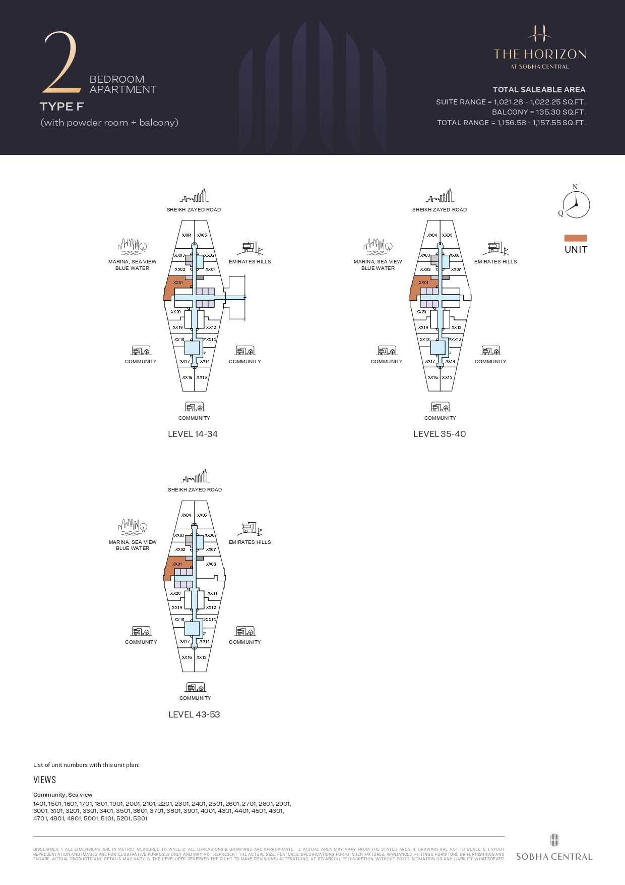 Typical Floor Plan | - | LEVEL 14-53 TYPE F | 1157.55 Sq Ft | Apartment |